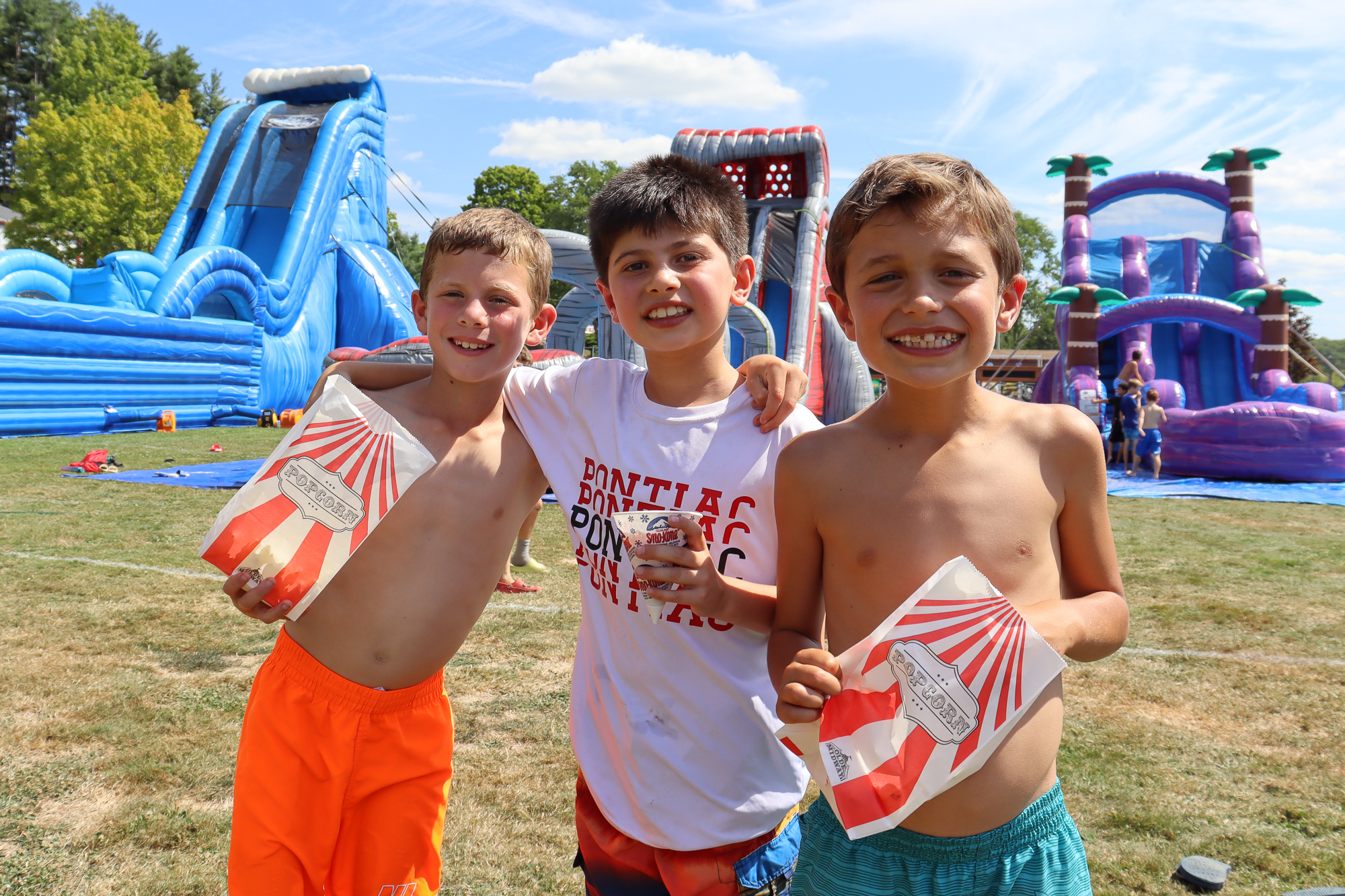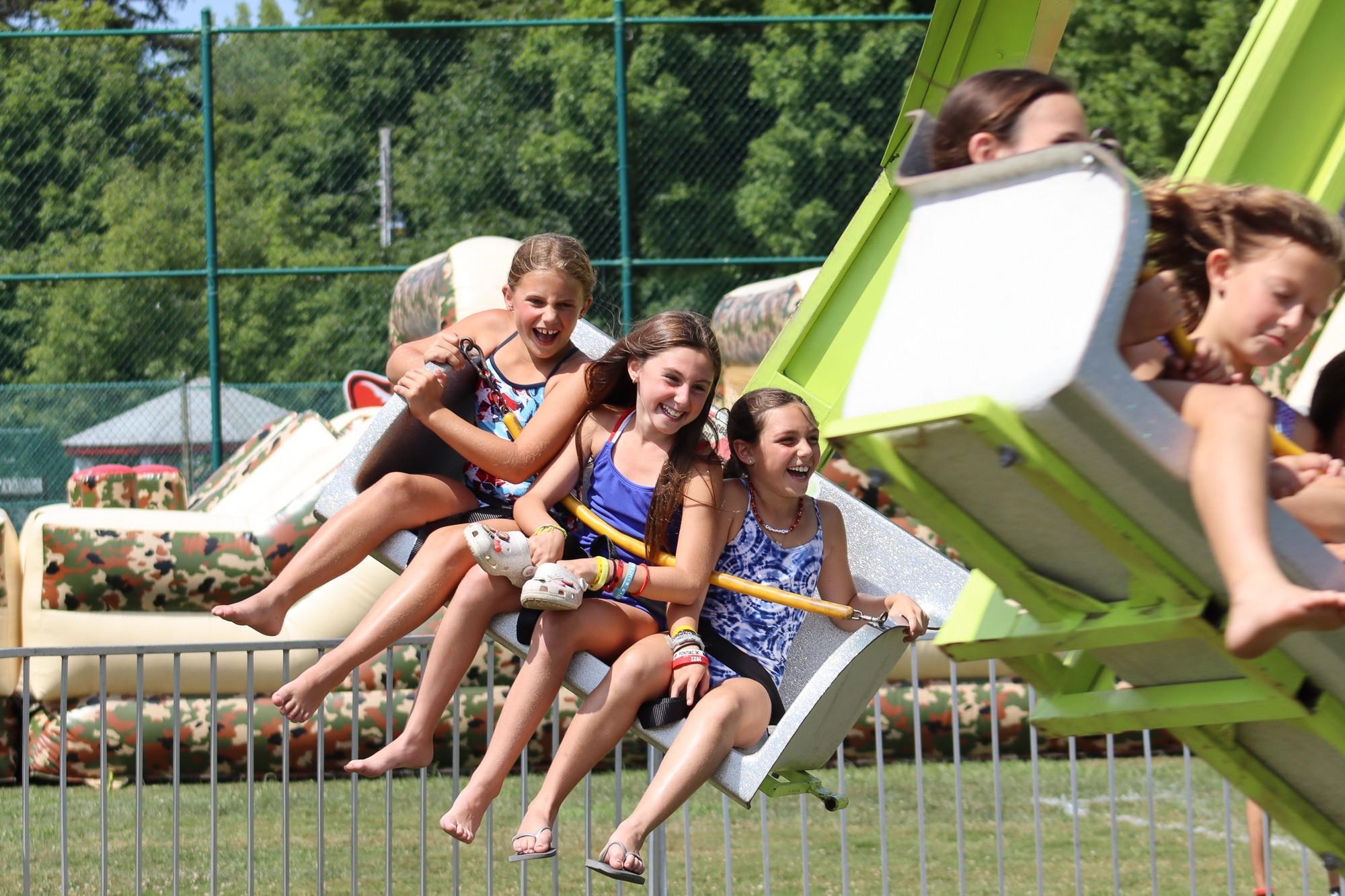 ACTIVITIES MENU Adventure Archery Circus Horseback Riding Ninja Warrior Outdoor Adventure Team Building Treetop VillageArts & Cooking Arts & Crafts Cooking DJ Program Photography Theater WoodshopAthletics Baseball/Softball Basketball Dance Fitness Center Flag Football Golf Gymnastics Hockey Lacrosse Mind-Body-Movement Mini Golf Mixed Martial Arts Pickleball Running Club Soccer Spin Classes Team Handball Tennis VolleyballSpecial Events Big Sister/Little Sister Birthday Ball Carnival College Game Day Color Run Color War | Color Wars Activities Fourth Of July Girls Puttin On The Hits Girls Sing Glow Disco/Prom Disco Halloween in July Magician/Hypnotist Olympics Pirate Day Square Dancing Water Fight/Slip n’ Slide 5K RunSTEM Chess Drones Models & Legos RoboticsCamp Trips Day Trips Overnight Trips Teen TripsWaterfront Boating Fishing Pools Sailing Water Skiing & Banana Boating Inflatable Waterpark CARNIVAL AT CAMP PONTIAC Our annual Carnival is held right after Color War! The entire camp enjoys a relaxing, fun-filled day of rides, bouncy toys, and food concessions.