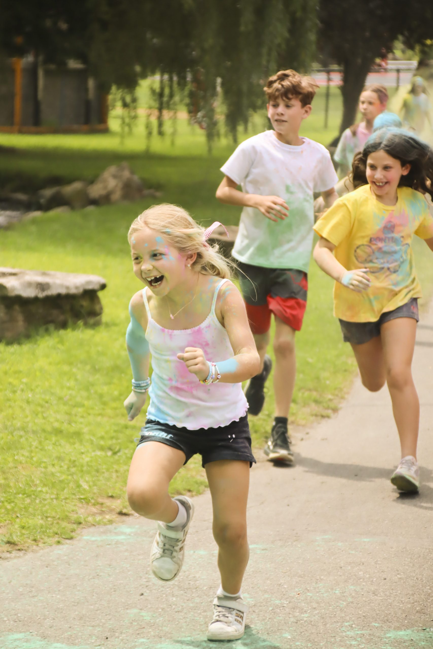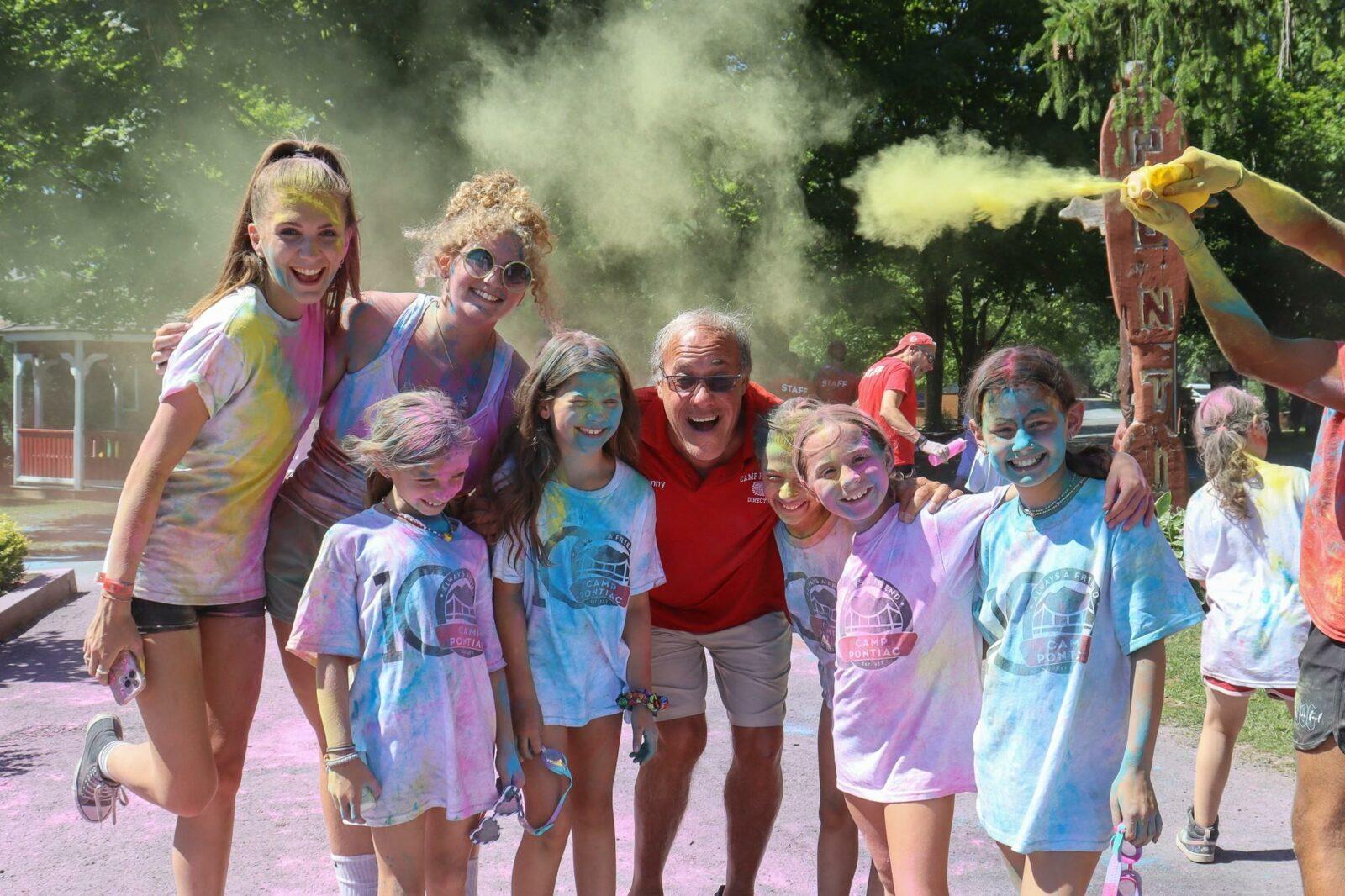 ACTIVITIES MENU Adventure Archery Circus Horseback Riding Ninja Warrior Outdoor Adventure Team Building Treetop VillageArts & Cooking Arts & Crafts Cooking DJ Program Photography Theater WoodshopAthletics Baseball/Softball Basketball Dance Fitness Center Flag Football Golf Gymnastics Hockey Lacrosse Mind-Body-Movement Mini Golf Mixed Martial Arts Pickleball Running Club Soccer Spin Classes Team Handball Tennis VolleyballSpecial Events Big Sister/Little Sister Birthday Ball Carnival College Game Day Color Run Color War | Color Wars Activities Fourth Of July Girls Puttin On The Hits Girls Sing Glow Disco/Prom Disco Halloween in July Magician/Hypnotist Olympics Pirate Day Square Dancing Water Fight/Slip n’ Slide 5K RunSTEM Chess Drones Models & Legos RoboticsCamp Trips Day Trips Overnight Trips Teen TripsWaterfront Boating Fishing Pools Sailing Water Skiing & Banana Boating Inflatable Waterpark COLOR RUN AT CAMP PONTIAC The entire camp follows a route throughout camp which has staff at various stations spraying different color powder onto each camper as they run by. Each participant looks like a rainbow of colors at the end of the race.