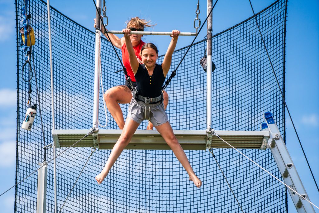 The circus facility features a full-sized flying trapeze rig, complete with a safety net, harnesses, and a safety line system. It also has multiple height-adjustable aerial points ranging from 20 to 32 feet, each equipped with crash mats for practicing various aerial disciplines. All equipment meets modern professional industry standards, providing a safe and high-quality training environment.