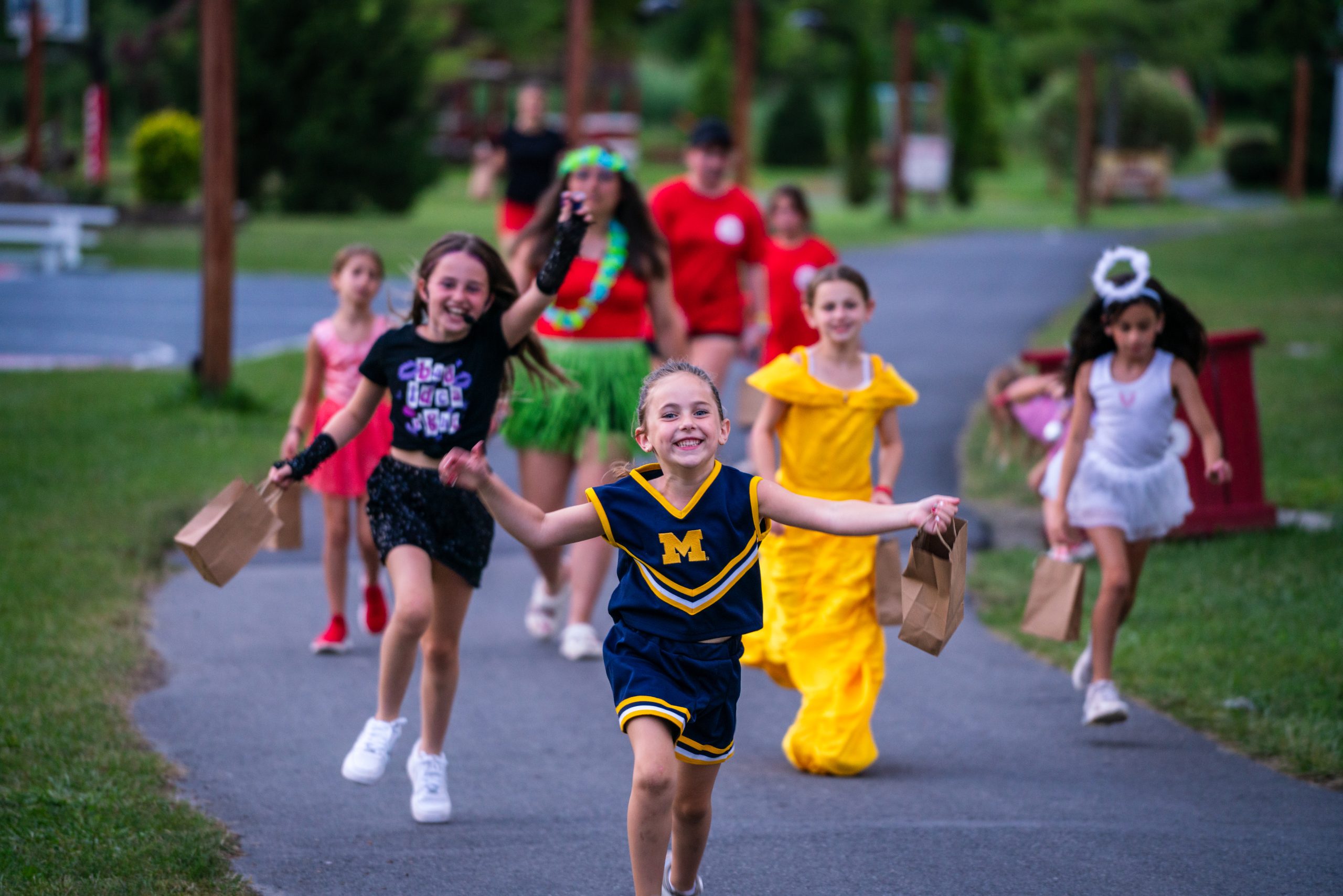 Our lower camp girls love Halloween in July! They bring costumes, get dressed up for dinner in our decorated canteen with picture taking followed by trick-or-treating. Upper camp girls are stationed throughout the campus handing out treats and small gifts. It's one of our many traditions that enable our youngest campers to spend time with their "big sisters"!