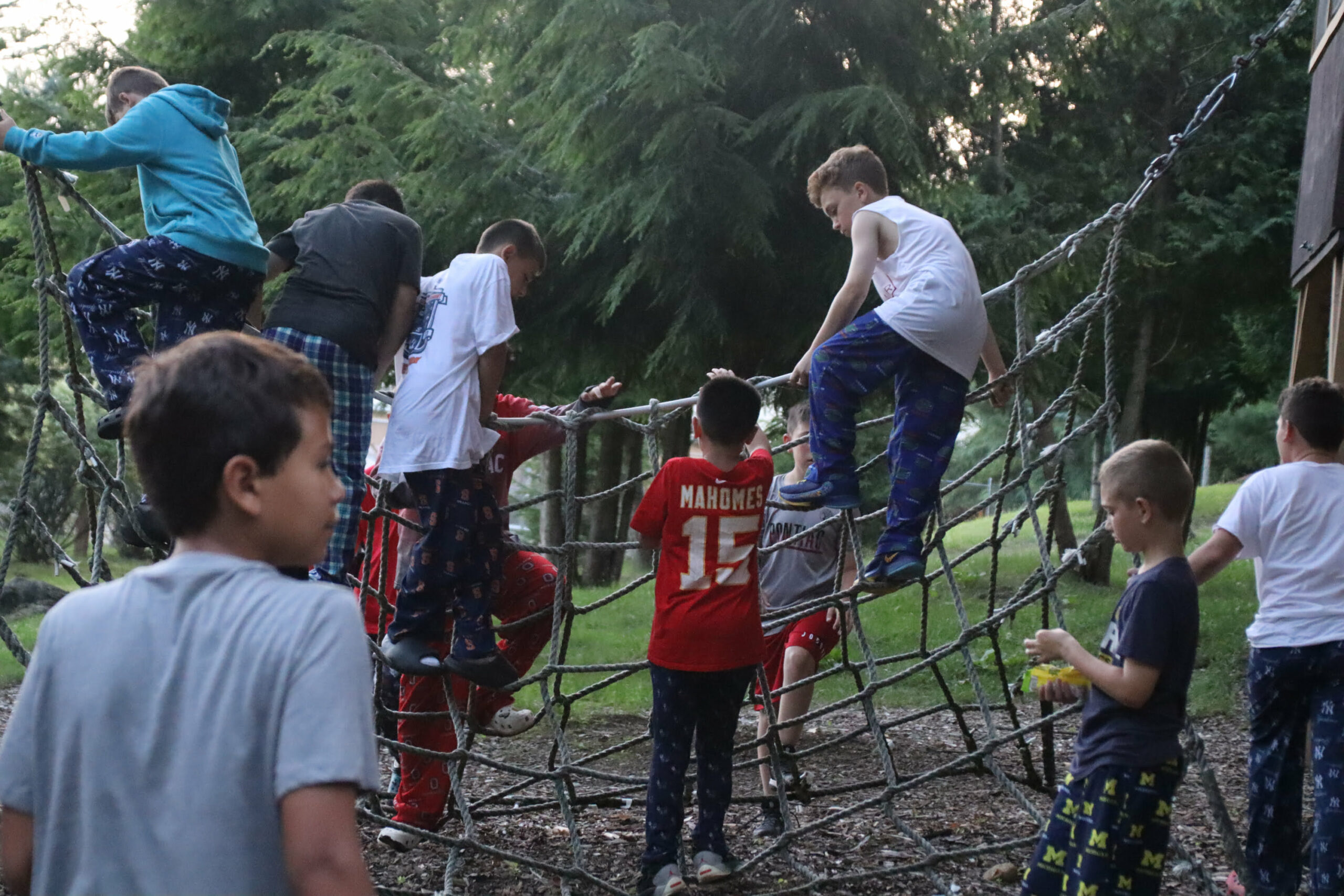 Camp Pontiac has its very own ultramodern treehouse complex in our onsite woodland area that can sleep up to seventy people! Each camper division has a chance to visit our Treetop Village and spend the night away from their cabins. The evening begins with a fun activity followed by a journey through our obstacle course. We wrap up the night with a cookout complete with stories and songs around the campfire as we munch on s’mores. Campers then go to sleep in our treehouses and wake up to breakfast and hot cocoa.
